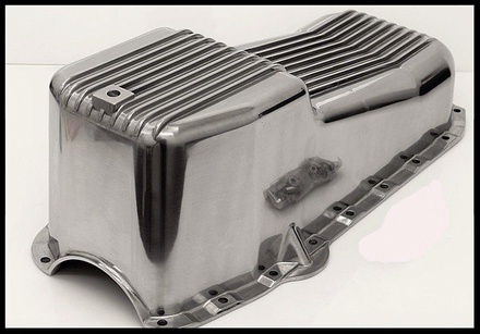 Oil Pan, Cast Aluminum, Finned, Polished, 4 qt., Chevy, Small Block, Each